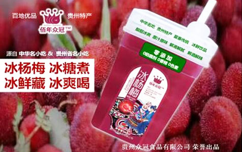 佰年眾冠冰楊梅---地方特產新貴不走尋常路“冰楊梅”汁作為貴州地區比較常見的一種家庭和街邊民間特色小吃型飲品已經由來已久。它最早起源于貴州地區苗族的村寨,它的傳統做法是取鮮楊梅加白砂糖和水一起煮,煮好之后倒進壇子里,再把壇子放進冰涼的水中降溫之后飲用。尤其是在夏日里,這種貴州特色的美食已經受到越來越多的人們的青睞;全國各地來貴州旅游的人們更是百喝不厭,很是喜歡。REMO+